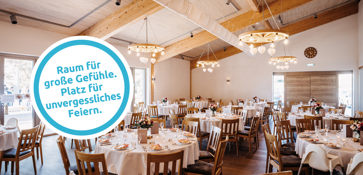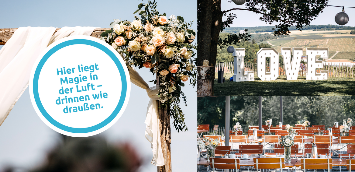 Unsere große Fensterfront mit Blick ins Maintal bietet einen Zugang nach draußen, zur Terasse mit Sitzmöglichkeiten. Haben Sie Kinder auf der Gästeliste, können diese bei uns im separaten Indoorspielbereich malen, basteln, spielen ... Auch im Außenbereich finden Große und Kleine genügend Platz. Bei uns können Sie entspannt und in aller Ruhe feiern und dazu noch einen herrlichen Ausblick mit wunderschönen Sonnenuntergängen genießen!
