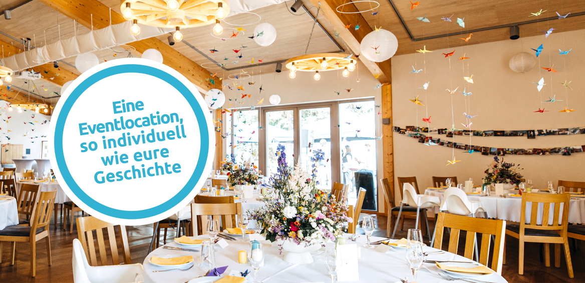 Unsere große Fensterfront mit Blick ins Maintal bietet einen Zugang nach draußen, zur Terasse mit Sitzmöglichkeiten. Haben Sie Kinder auf der Gästeliste, können diese bei uns im separaten Indoorspielbereich malen, basteln, spielen ... Auch im Außenbereich finden Große und Kleine genügend Platz. Bei uns können Sie entspannt und in aller Ruhe feiern und dazu noch einen herrlichen Ausblick mit wunderschönen Sonnenuntergängen genießen!